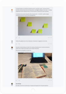 Nobody grows muscles by watching other people exercise. It’s the same with the concepts we teach at IDEO U. In order to develop skills like creative problem solving or become more influential as a leader, you need to try it out for yourself through repeated practice loops and exposure to new contexts. In our courses, we provide opportunities to try out new behaviors online in the comfort of your home, but more importantly, we give projects that take you offline and into real life to deepening your learning.