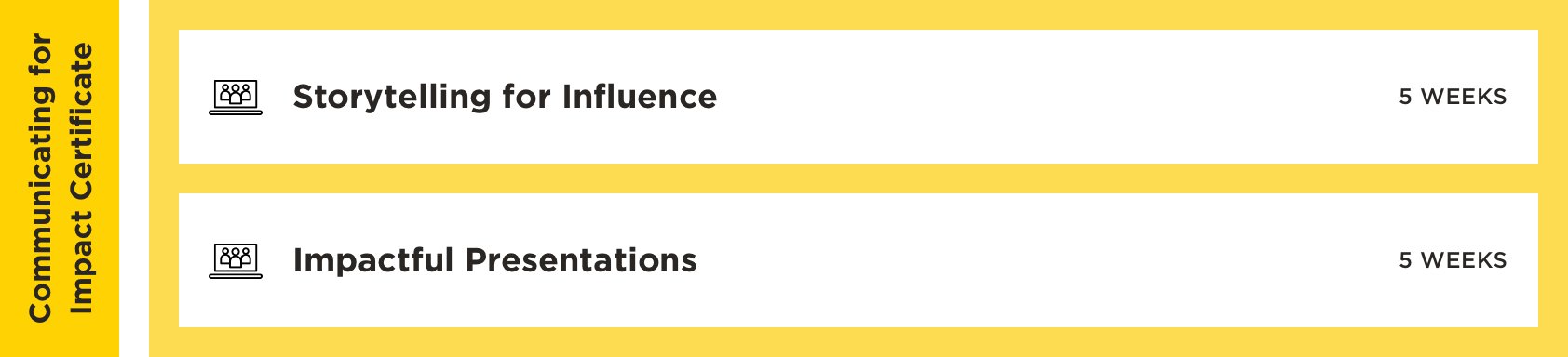While courses can be taken in any order, we recommend completing Storytelling for Influence first