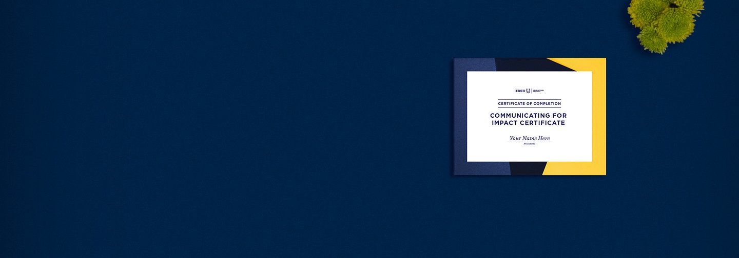 After completing the two courses, you’ll receive your Communicating for Impact Certificate of completion via email as a downloadable PDF within 1-2 weeks of completing the final required course. Certificates are configured for uploading and sharing on LinkedIn.