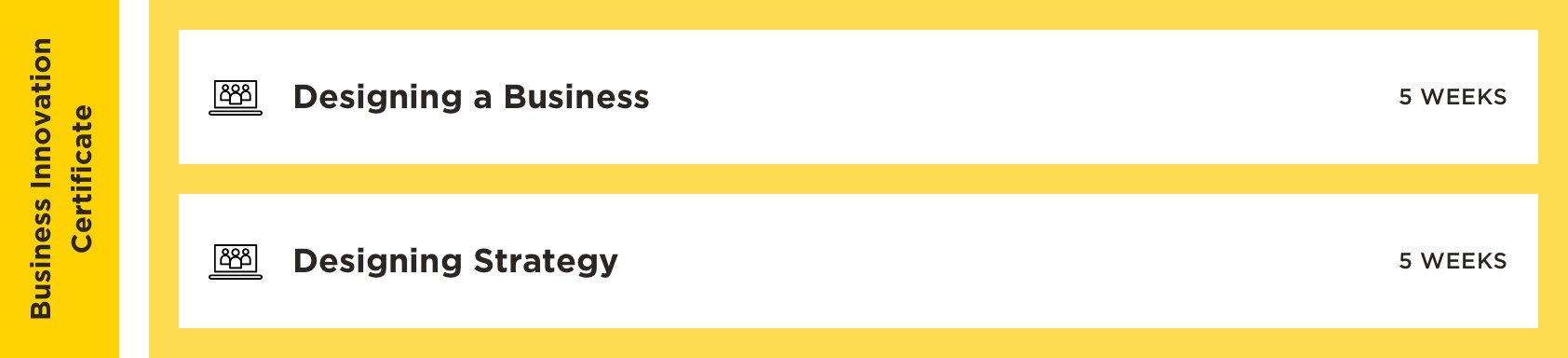I work at a (non-profit, school, government, startup, small business). Is this program right for me?Short answer: yes. Though some of the frameworks and thinking in these courses are rooted in business, they’re still highly applicable to anyone who wants to drive innovative initiatives at work and grow ideas, confidence, and influence in their organization. In both Designing Strategy and Designing a Business, case studies, terms, and examples were created to help different individuals see themselves and their organizations in the work.